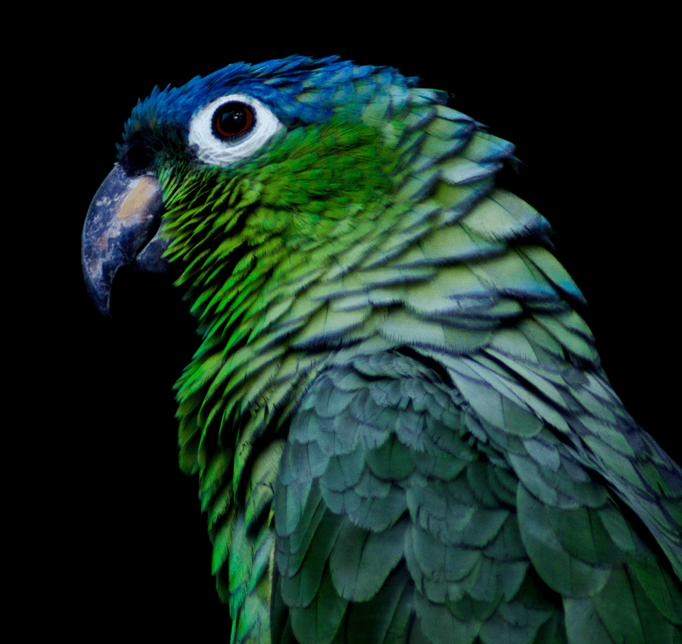 These amazing birds are spectacular and have an amazing range of colors. The black contrast background highlights the beauty of the parrots.